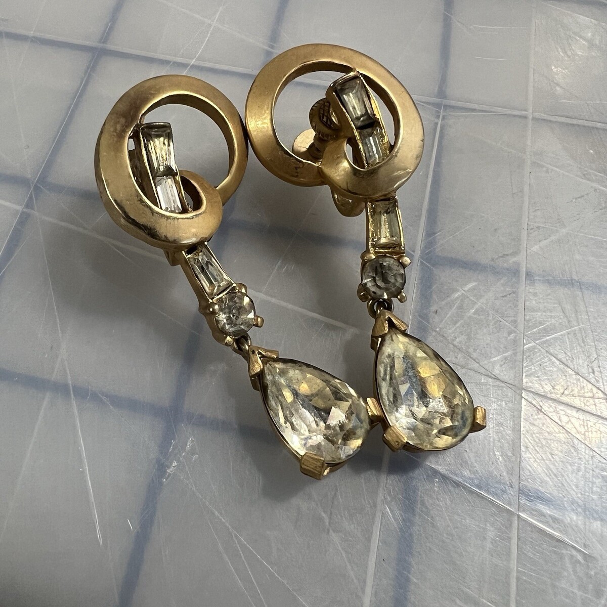 - Vintage Tara Earings Rhinestone Dangle Screw Post Earrings Marked Tara