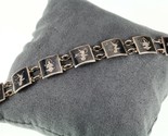 - Vintage Thai Silver Siam Niello Enamel Panel Bracelet 7"