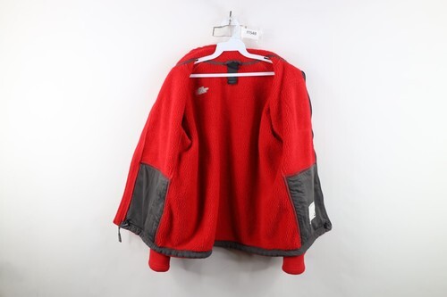 - Vintage The North Face Boys XL Faded Spell Out Heavyweight Fleece Jacket Red