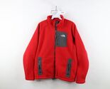 Vintage The North Face Boys XL Faded Spell Out Heavyweight Fleece Jacket Red