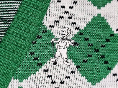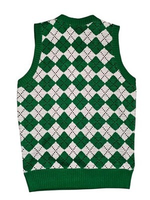 The Vintage The T. Barry Knicker Co. Men?s Argyle Green White Sweater Vest in size Small is a classic and stylish piece perfect for various occasions. Made of acrylic material with a tight-knit fabric, this sleeveless vest features a V-neckline and embroidered accents, adding a touch of sophistication. The argyle/diamond pattern in green and white colors makes it a colorful and breathable choice for fall and spring seasons. Machine washable for easy care, this vest is a timeless addition to any man's wardrobe, especially for those who enjoy a game of golf.