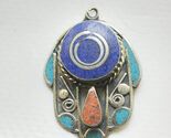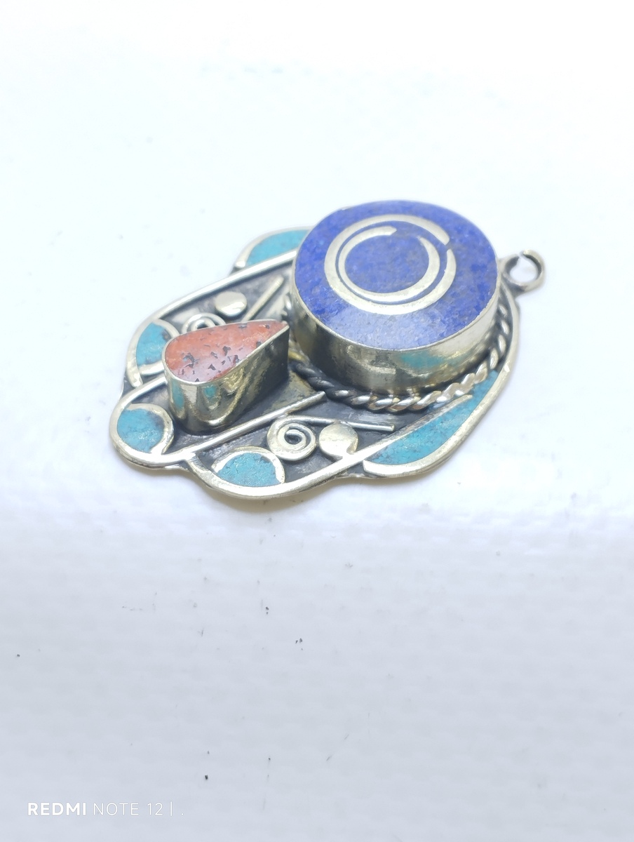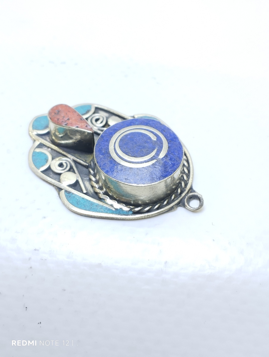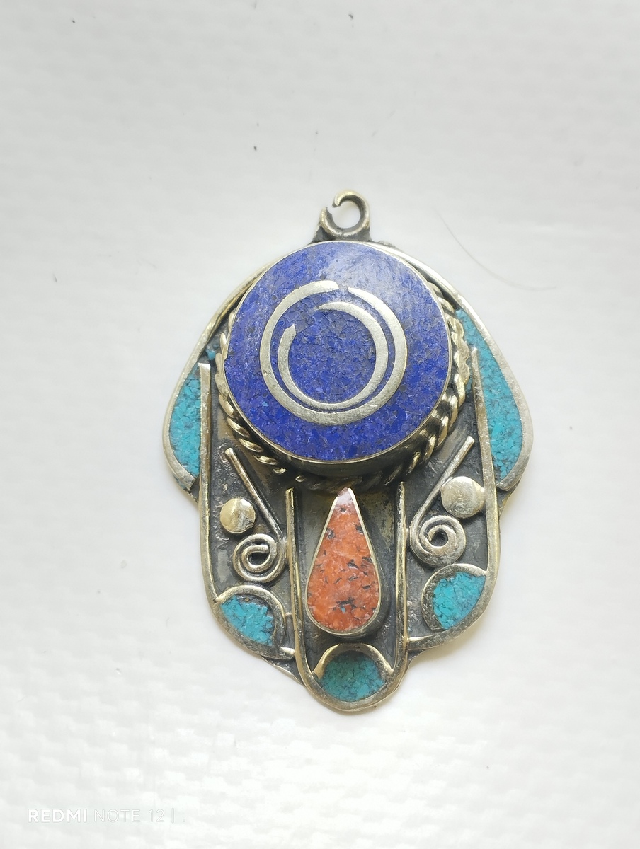 - Vintage Tibetan Handmade Pendant – Lapis Lazuli, Turquoise & Coral Inlay