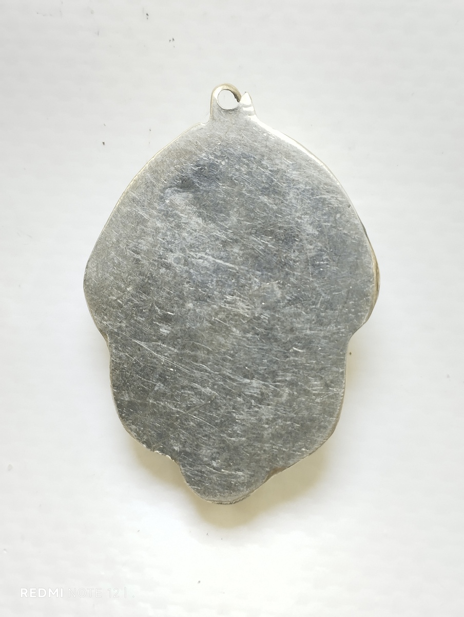 The pendant is crafted in a handmade ethnic design with decorative silver-tone spirals and bead details, reflecting traditional Himalayan/Tibetan artistry. A perfect piece for collectors of ethnic jewelry or anyone who appreciates bold, spiritual-inspired designs. Suitable to wear as a necklace pendant or to keep as an amulet.