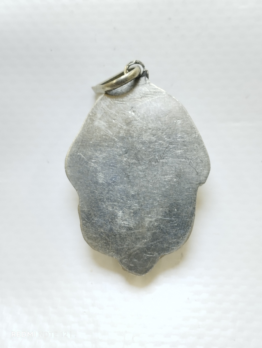The pendant is crafted in a handmade ethnic design with decorative silver-tone spirals and bead details, reflecting traditional Himalayan/Tibetan artistry. A perfect piece for collectors of ethnic jewelry or anyone who appreciates bold, spiritual-inspired designs. Suitable to wear as a necklace pendant or to keep as an amulet.