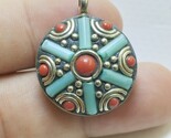 - Vintage Tibetan Round Pendant with Coral & Green Inlay – Boho Ethnic Jewelry