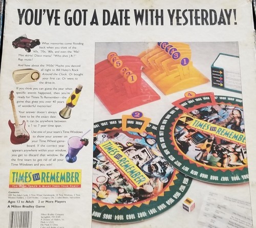 VINTAGE MILTON BRADLEY GAME TRIVIA TIMES TO REMEMBER THE GAME THAT'S A BLAST FROM YOUR PAST 1991 AGES 12 TO ADULT 2 OR MORE PLAYERS GOOD VINTAGE CONDITION ALL PIECES ARE INCLUDED I PRINTED OUT PLAYING INSTRUCTIONS Feedback From Buyer Date/time very nice love him e********0 ( 956 ) 2019-03-26 03:23:08 Exactly as described and fast shipping. Thank you. n*******y ( 126 ) 2019-03-25 23:59:21 Thanks ? l**********2 ( 131 ) 2019-03-25 20:17:42 Great product, fast delivery. a*********f ( 124 ) 2019-03-25 17:26:59 Exactly as described. Fast shipping. Great seller. Thank you. w******z ( 1542 ) 2019-03-24 01:26:37 Pants will be great for work, thanks! m***************y ( 470 ) 2019-03-23 13:55:56 Awesome seller w******5 ( 22 ) 2019-03-23 11:57:05 Great! Fast ship! A++ p*************n ( 190 ) 2019-03-22 22:58:51 Great! Fast ship! A++ p*************n ( 190 ) 2019-03-22 22:58:17 5 star on pack and ship!!!! Just as described, wonderful addition piece! k*****e ( 626 ) 2019-03-22 19:46:25 Lightning fast shipping! Careful packaging. As described. Thank you! ? l********c ( 1088 ) 2019-03-22 18:18:26 Happy customer. Thank you!! n******5 ( 373 ) 2019-03-22 02:16:12 Thanks!! l***********n ( 3220 ) 2019-03-21 03:03:22 It looks great thank you. Arrived? m**********6 ( 107 ) 2019-03-20 23:48:48 Thanks so much for the fast and free shipping!!! m***********s ( 1587 ) 2019-03-20 21:04:10 Everything as described - Thank you! n*****4 ( 1713 ) 2019-03-20 19:49:13 Shipped quickly. Item as described, very pleased. i**************u ( 161 ) 2019-03-20 18:07:54 Very fast delivery exactly as described!! j**********j ( 125 ) 2019-03-20 04:57:44 fast delivery j********r ( 14 ) 2019-03-20 00:05:38