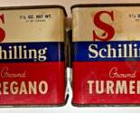Vintage Tin Schilling Ground TURMERIC Spice Tin & OREGANO 1 1/2 Ounces Empty