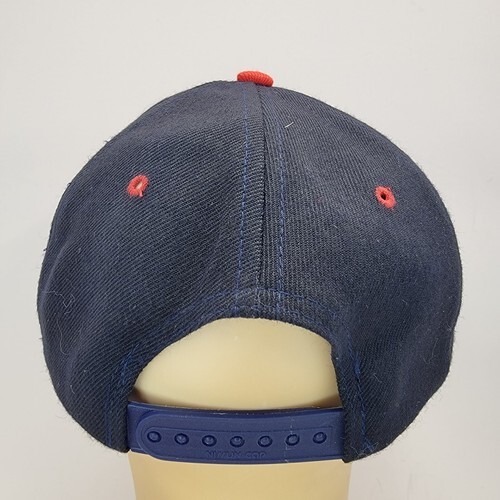Vintage Toshiba Machine Nissun Brand Snapback Baseball Cap Blue With Red Brim - Images shows the actual hat that will ship.