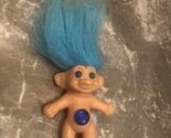 Vintage Treasure Troll Doll Blue Hair blue star wish stone 3" Made In Korea