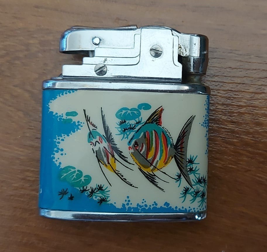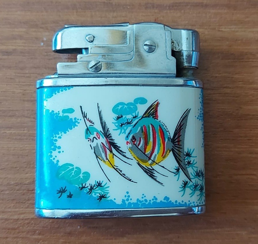 Vintage Tropical Fish Petrol Lighter – Collectible Decorative, Retro 1960s Style