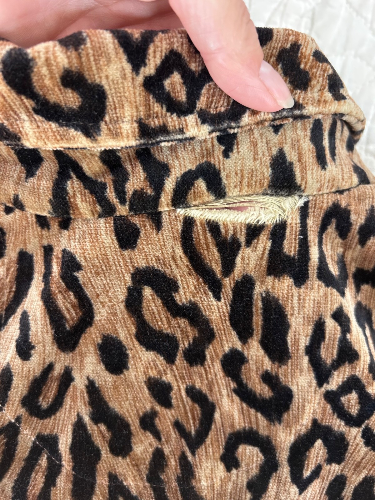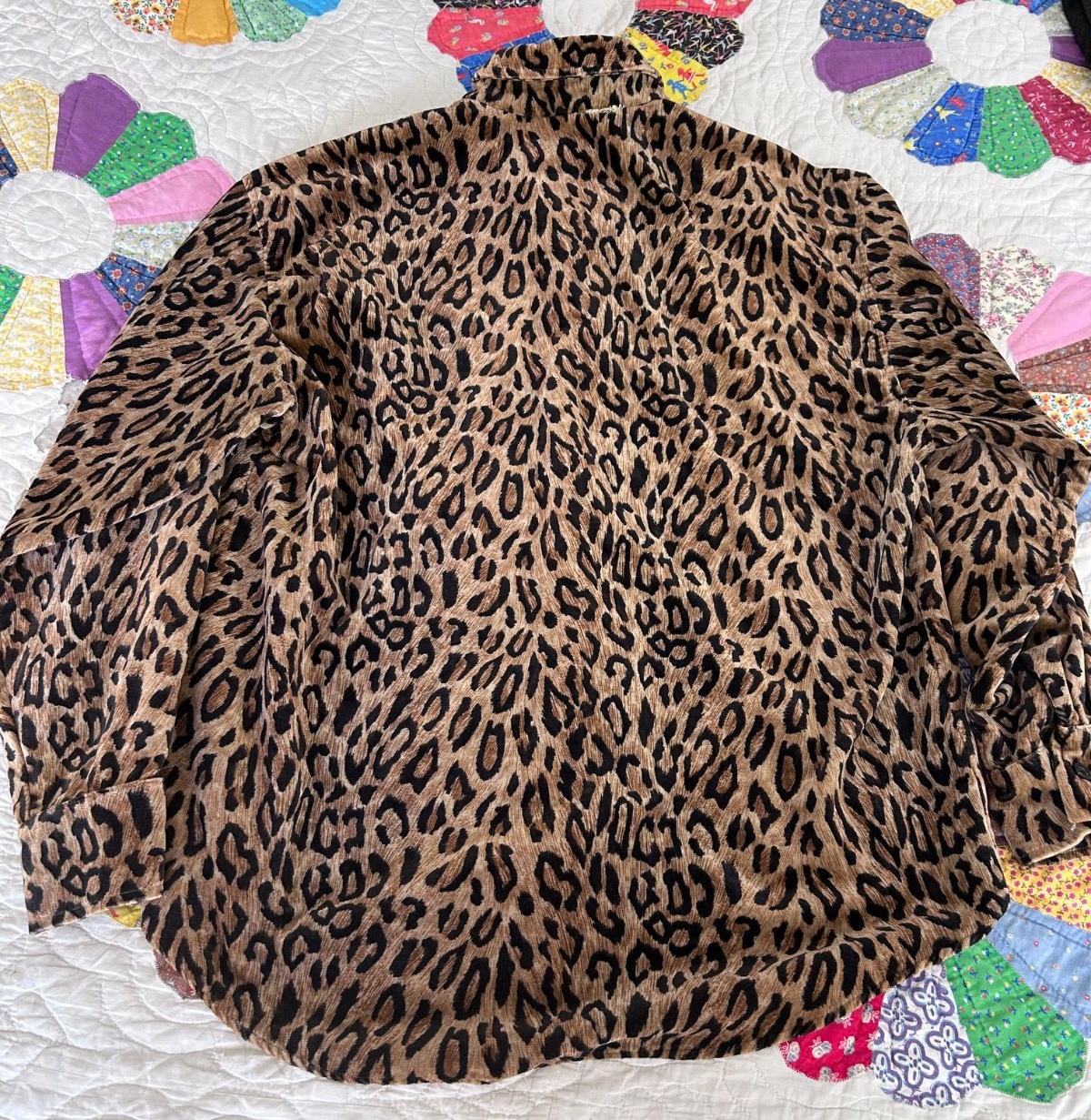 Vintage True Grit Cotton Velvet Button Up Shirt leopard print oversized Large