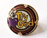 Vintage Try God Pin Hong Kong NOS Rainbow Hearts 1" Religious Jewelry F7F1