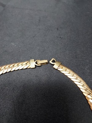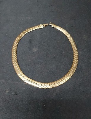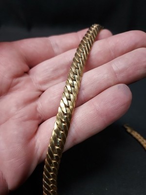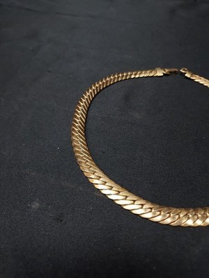 VINTAGE Unmarked Gold Filled Plated FLAT WIDE CUBAN LINK CHAIN NECKLACE 15 Inch. Condition is Used. Shipped with USPS Ground Advantage.