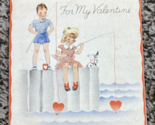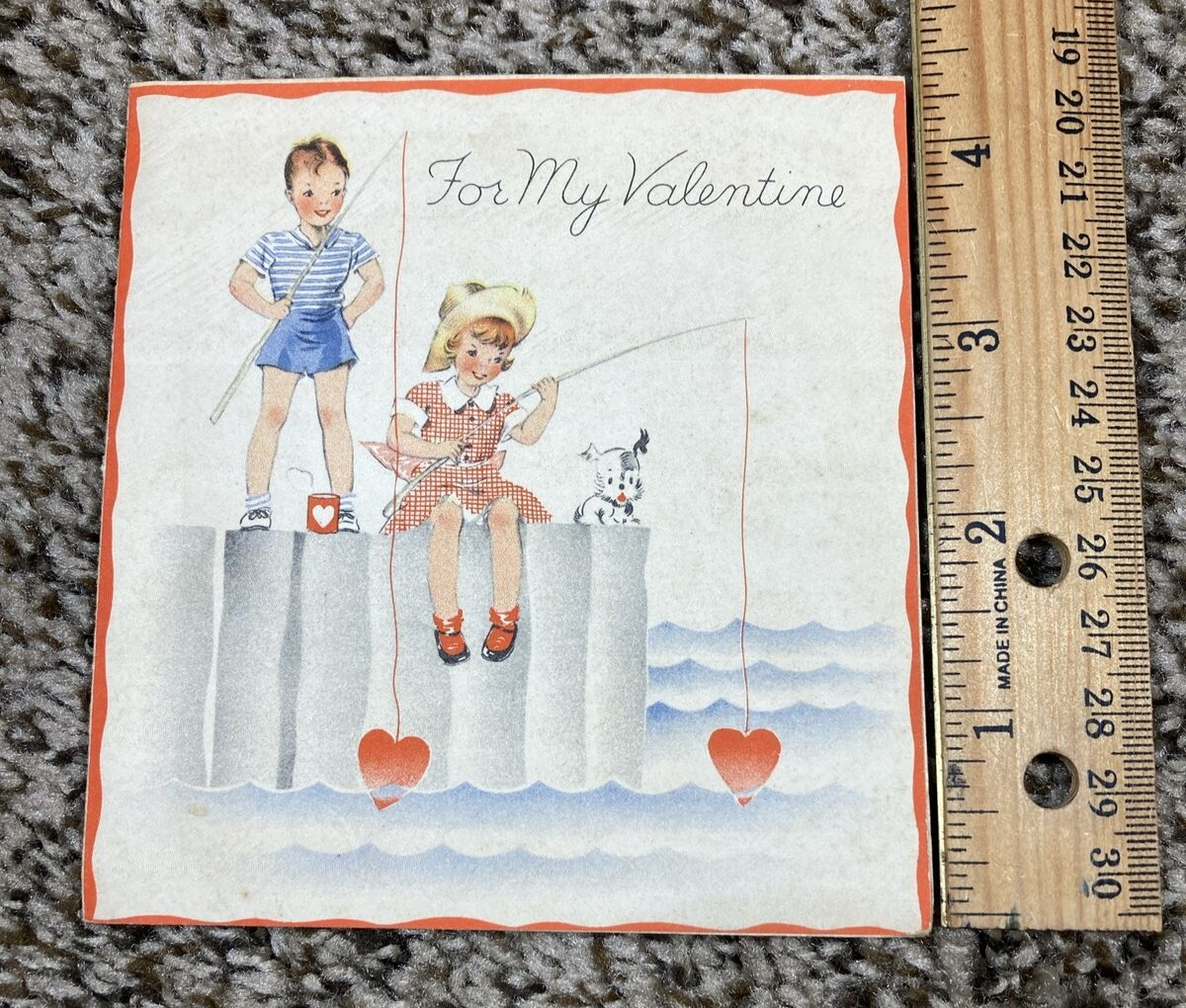 Primary image for Vintage Valentines Day Card Folded Boy Girl Fishing Use Your Heart For Bait