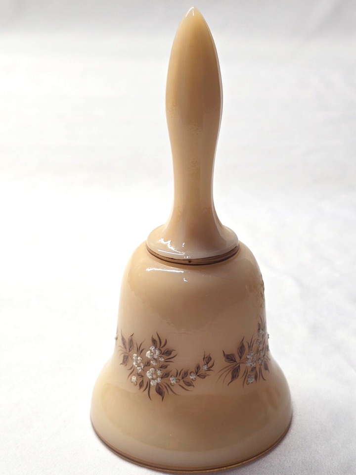 - Vintage WESTMORELAND 5.2" Glass Bell Hand Painted Raised Flowers On Almond Cream