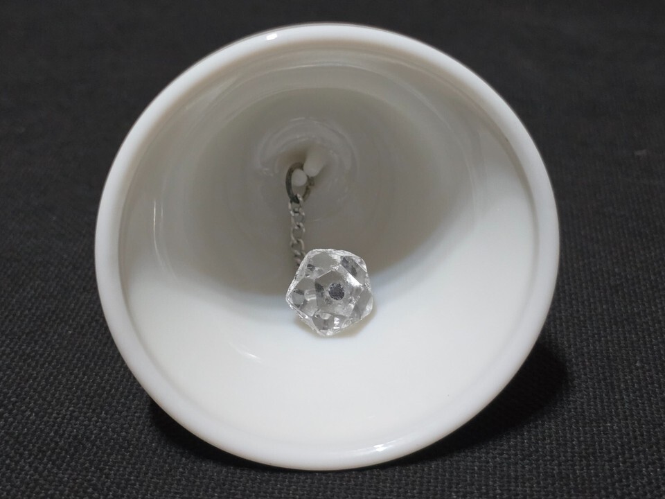 to no evidence of wear. Includes clapper. Measures 5.25" tall and