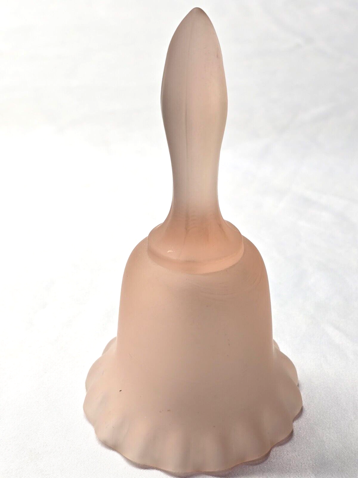- Vintage WESTMORELAND 5.25" Glass Bell Hand Painted White Rose On Pink Mist