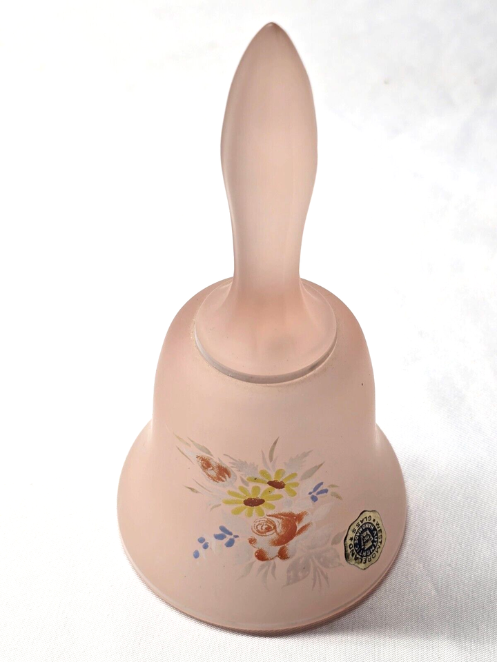 - Vintage WESTMORELAND 5.25" Glass Bell Hand Painted Wildflowers On Pink Frost