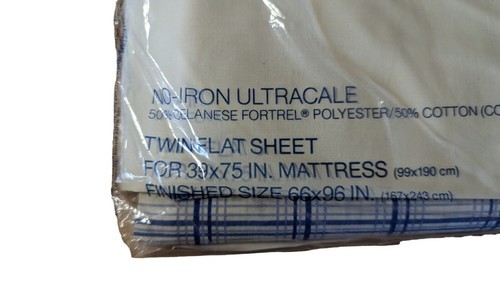 This Vintage Wamsutta Designer Workshop Calvin Klein handkerchief plaid full flat sheet is a charming addition to any bedroom. Made from a blend of 50% polyester and 50% cotton, this rectangular sheet features a checkered cream and blue color pattern, perfect for adding a touch of cottage style to your decor. With dimensions of 75" in length and 66" in width, this machine washable flat sheet is from the United States and is ideal for teens, adults, and kids alike. The Wamsutta brand and 180 thread count ensure quality and durability in this unique and classic bedding piece.