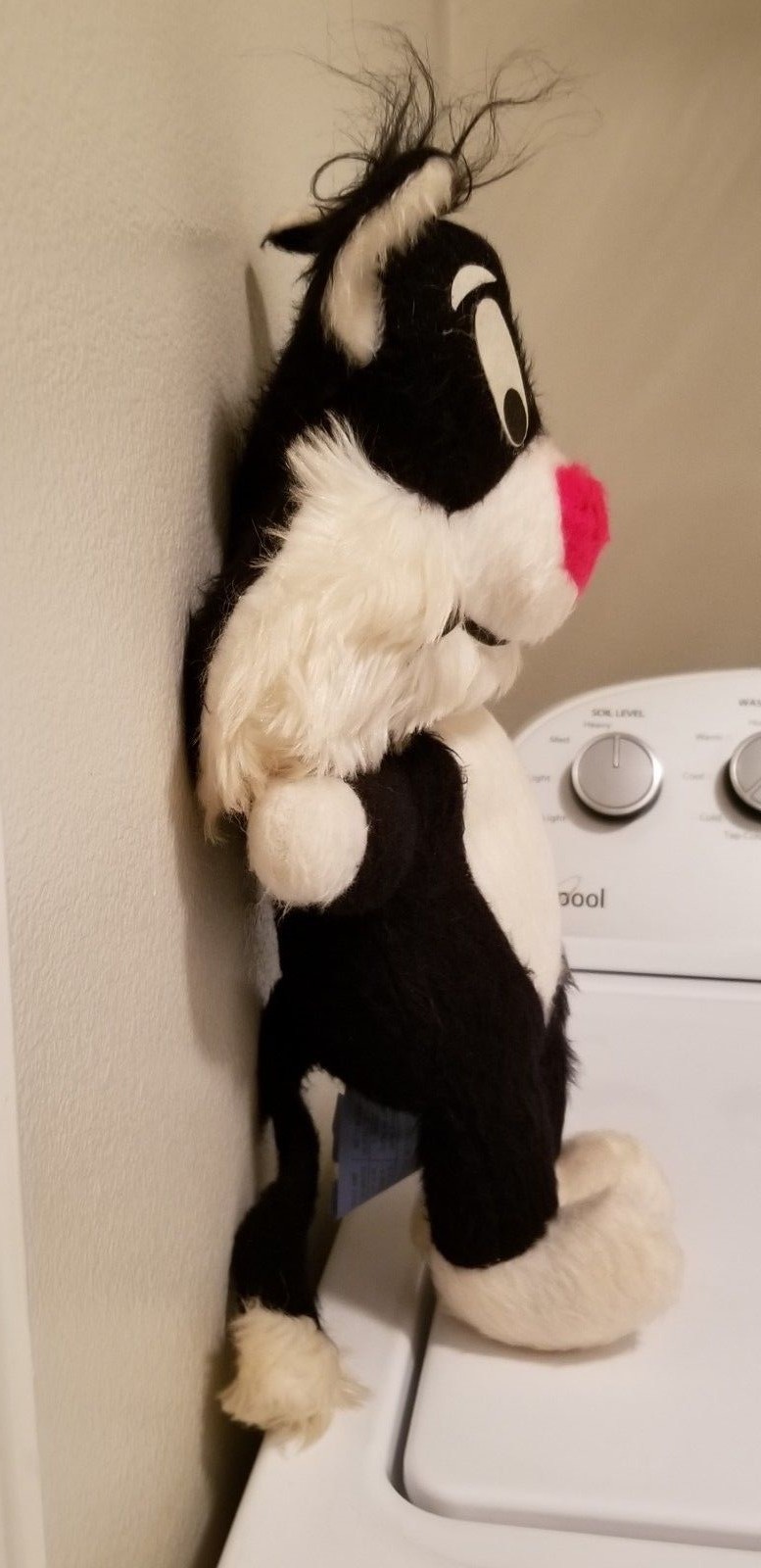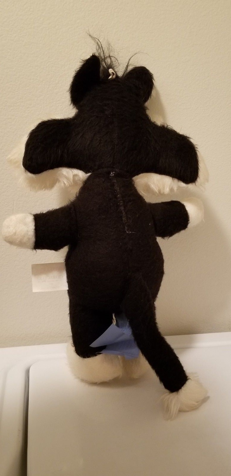 Excellent pre-owned Condition Vintage Mighty Star 1971 Warner Bros Sylvester the Cat 16" inch Plush animal. Just slightly dirty / discolored in his face hair. You can see some of his stitching, it stands out on his back. Complete / nice tush tags. No holes, rips, odors. They filled plush toys like this with a thick beaded material - that is alot different than now-a-days. Please See Photos! SMOKE FREE HOME! SUPER FAST SHIPPING!