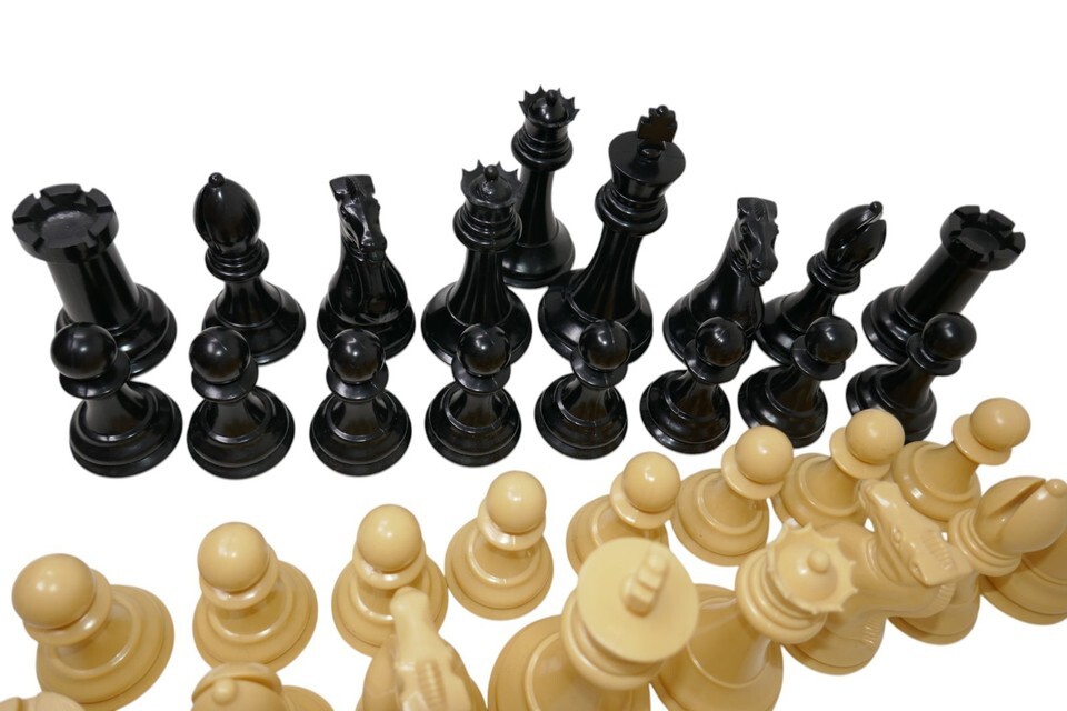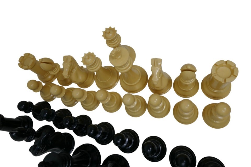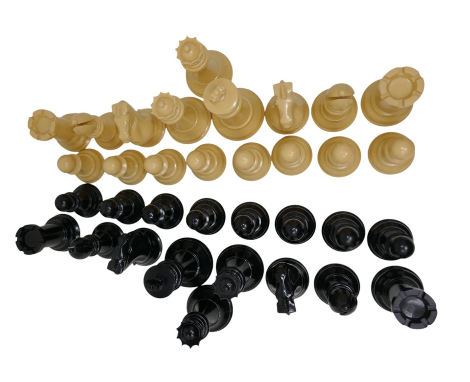 The Vintage Weighted Plastic Tournament Chess Set includes 34 pieces made of durable plastic in black beige colors. This is a complete 32 piece chess set with 2 extra queens but no chessboard. Perfect for collectors or anyone looking for a quality chess set to enjoy a classic game of strategy. See photos for item condition, this is a picture of the actual item. All reasonable offers considered!! **Payment** We do expect payment within 48 hours of the purchase. If for some reason you need a couple of extra days, please let us know. **Feedback** Once you have received your item, if you are satisfied, please leave feedback. We are happy to leave feedback for you after you have left feedback for us to let us know that you have received your item and the transaction is complete. Please contact us before leaving feedback if there is a problem. **International Buyers ? Please Note** Import duties, taxes, and charges are not included in the item price or shipping cost. These charges are the buyer's responsibility. Please check with your country's customs office to determine what these additional costs will be prior to bidding or buying. Check out our store for more deals!!