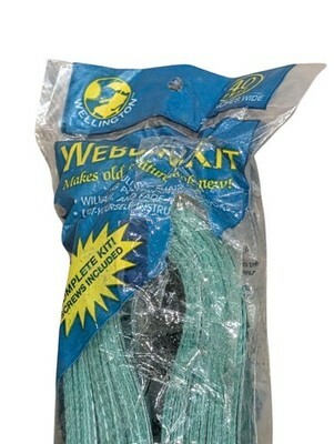 This is a vintage Wellington rewebbing kit for lawn chairs. 40 ft long by 2 and 1/4 in wide. Green with white stripes. Bag obviously has some wear to it but item is brand new inside the package.