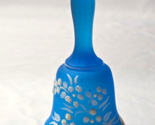 - Vintage WESTMORELAND 5.25" Glass Bell Hand Painted BEADED DAISIES ON BLUE FROST