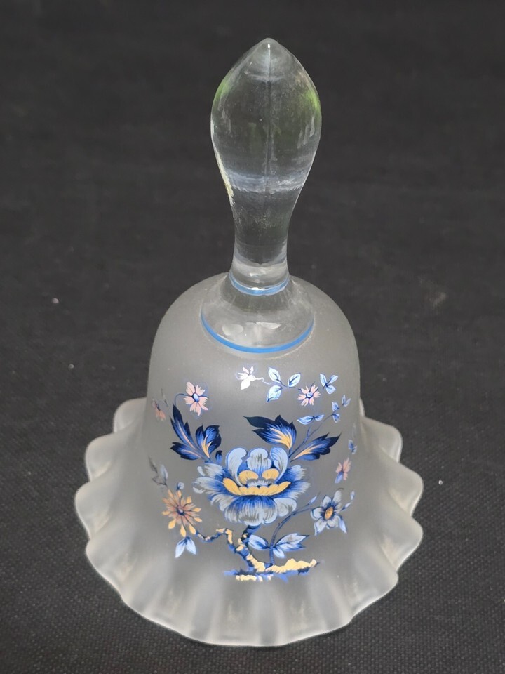 - Vintage WESTMORELAND 6.75" Glass Bell - Hand Painted CHINA ROSE ON SATIN FROST