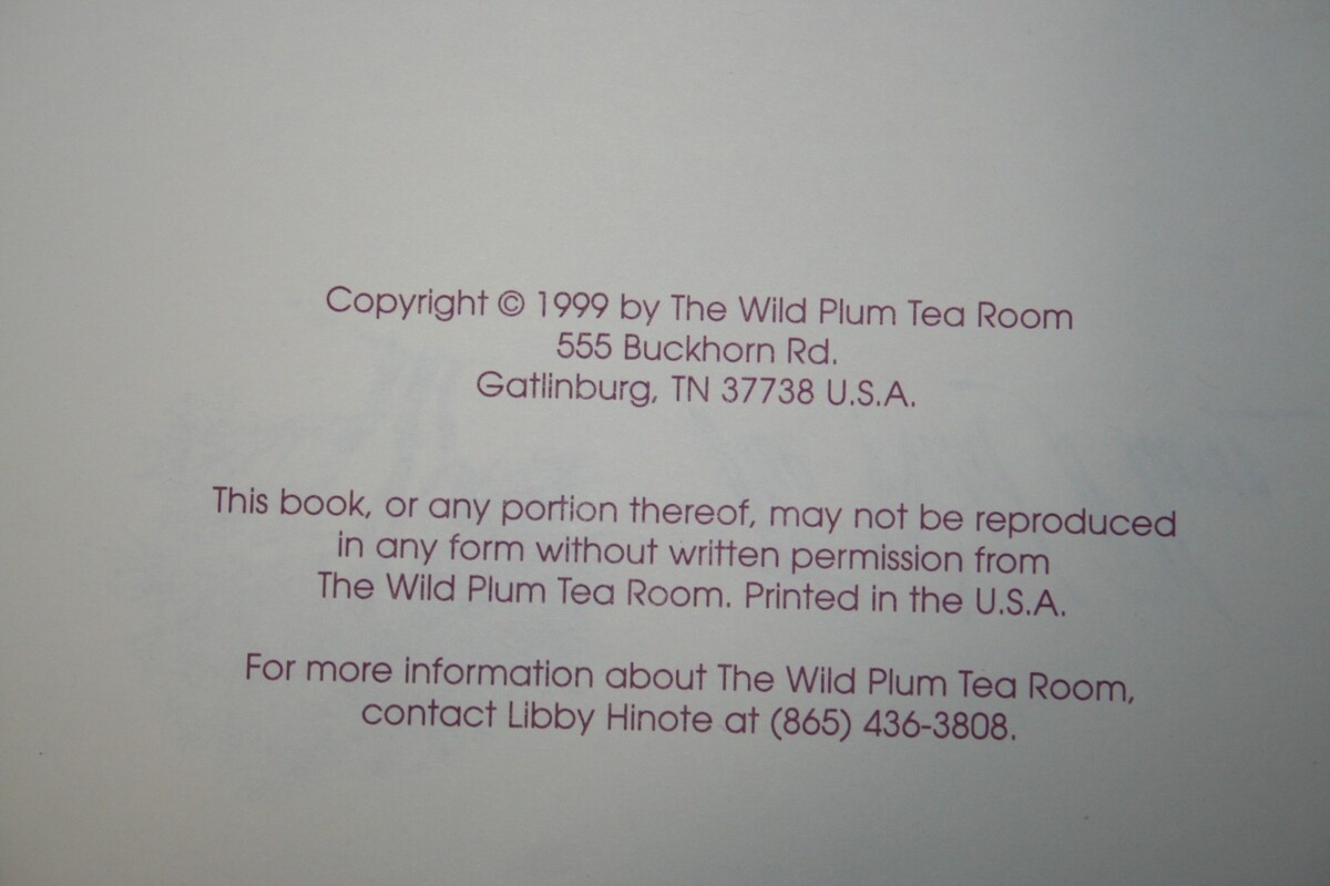 Vintage WILD PLUM TEA ROOM Gatlinburg Tennessee COOKBOOK 1999 Recipes Desserts