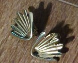 Vintage Womens Gold Tone Clam Seashell Clip On Earrings Grass 60s? Seaweed Small