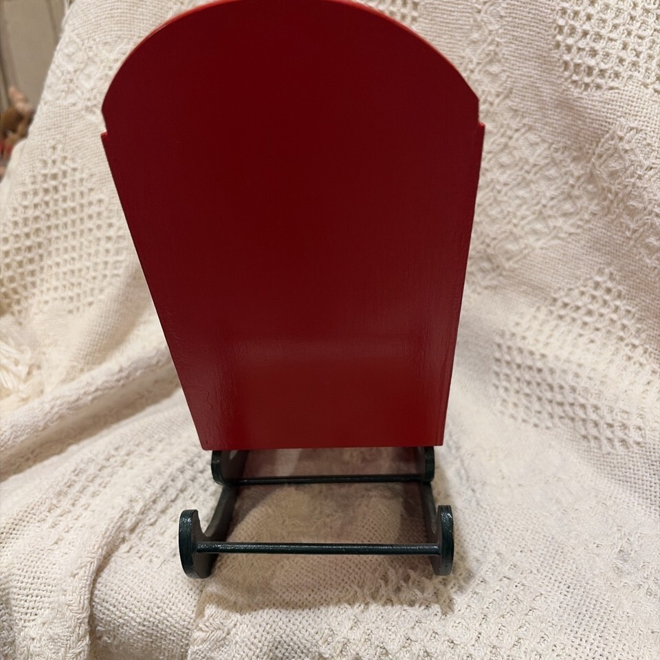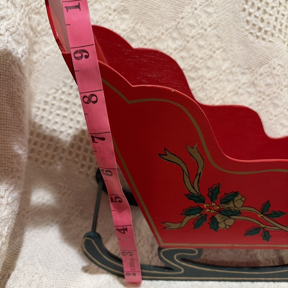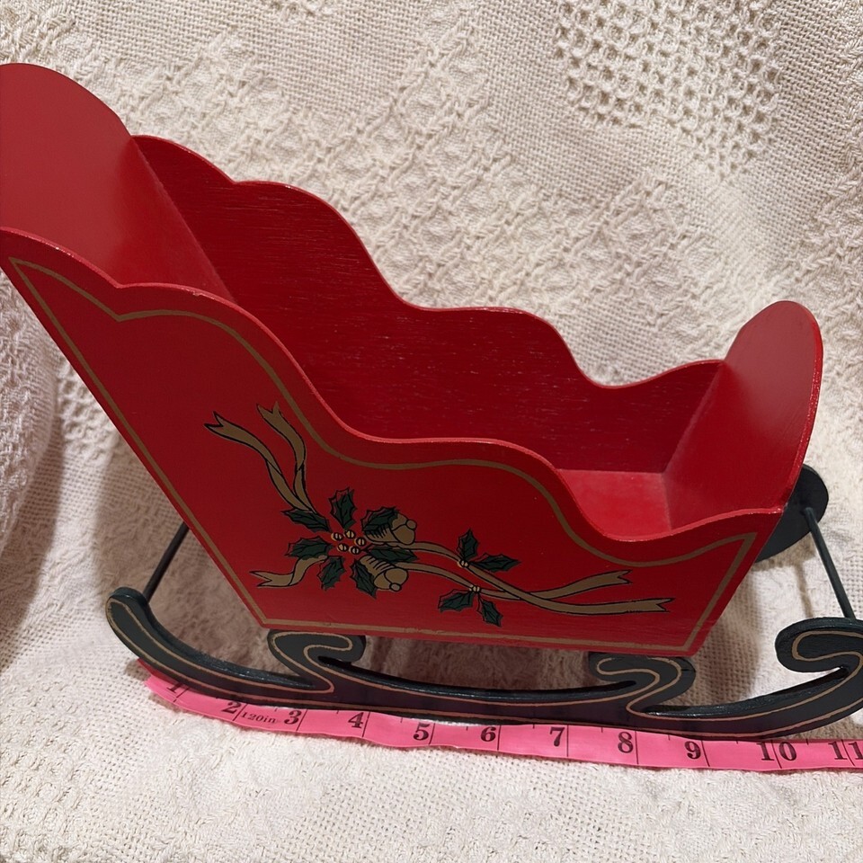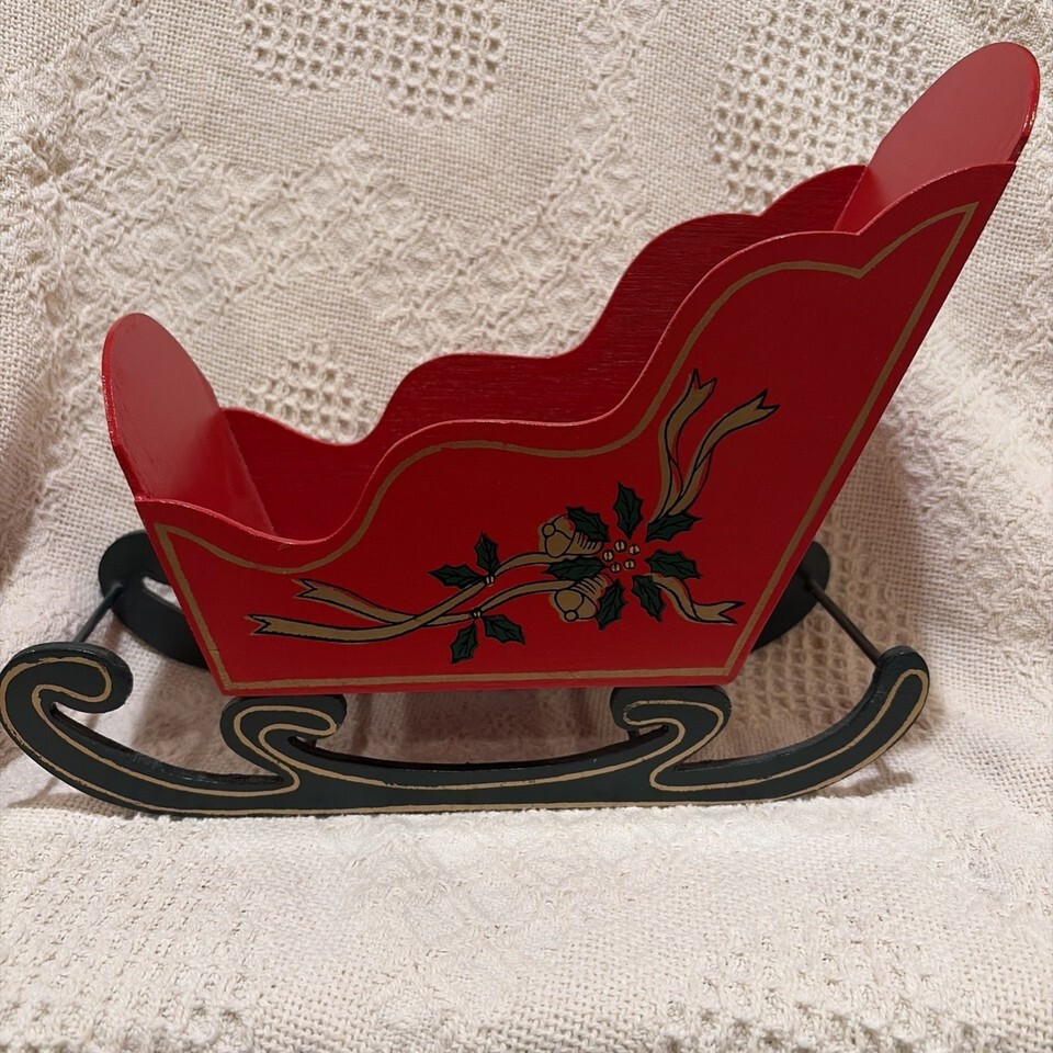 - Vintage Wooden Red HandPainted Sleigh Sled Christmas Card Candy Holder