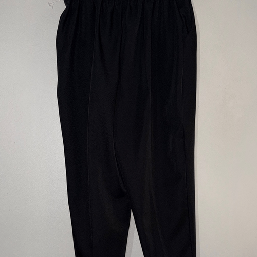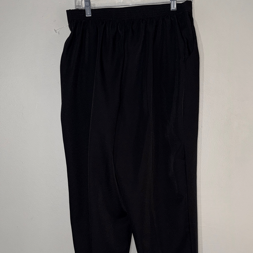 Measures approximately 30 inches at the waist with an inseam length of 27 inches and a rise of 13 inches, marked as a size 16, 100% polyester