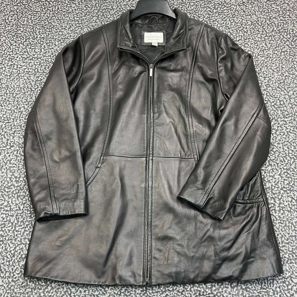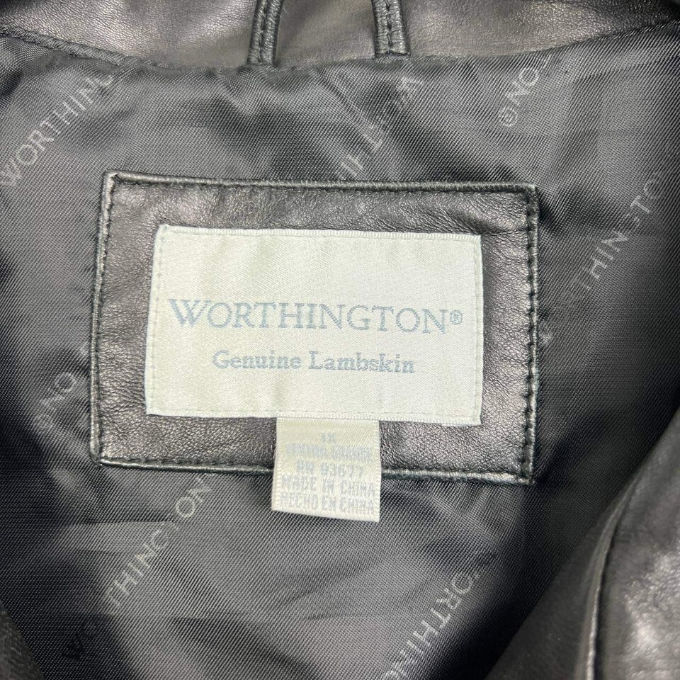 Vintage Worthington Leather Jacket Women 1X Black Lambskin Full Zip Long Sleeve