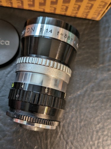 Cet objectif vintage Yashica Cine Yashinon est un incontournable pour tout passionne de photographie. Fabrique avec un materiau de baril a objectif en aluminium robuste, cette lentille possede une ouverture maximale de 1:14 F = 38 mm et une distance focale du zoom. Il est concu pour le montage D et a ete fabrique au Japon, comme l'indique le numero de modele n 8527221 et la boîte. Que vous soyez un collectionneur ou que vous recherchiez un ajout unique a votre equipement de photographie, cet objectif Yashica est un excellent choix. Il a ete bien entretenu et est en excellent etat de fonctionnement, pret a capturer des images epoustouflantes. Encherez avec confiance et ajoutez ce joyau vintage a votre collection aujourd'hui!