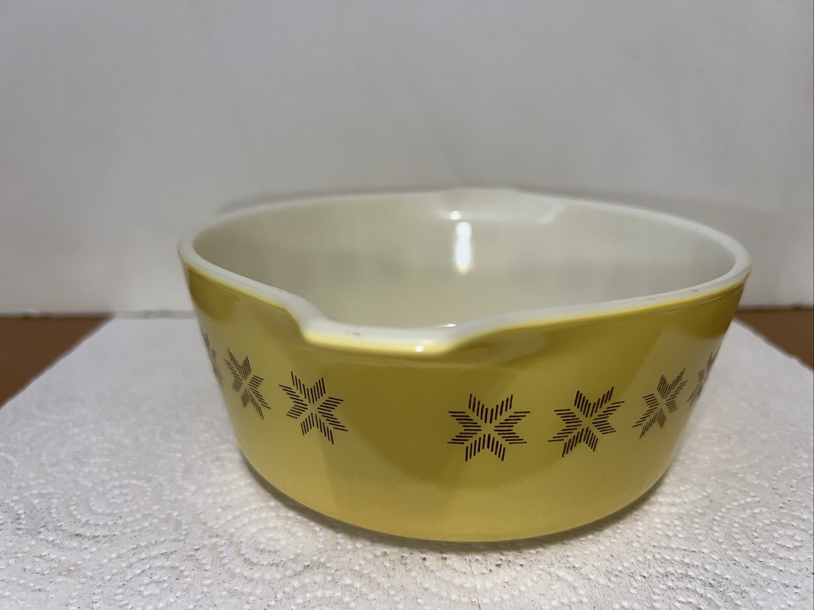 - Vintage Yellow Pyrex Casserole Dish 472 ,1 1/2 PT Town & Country Pattern w/ Lid