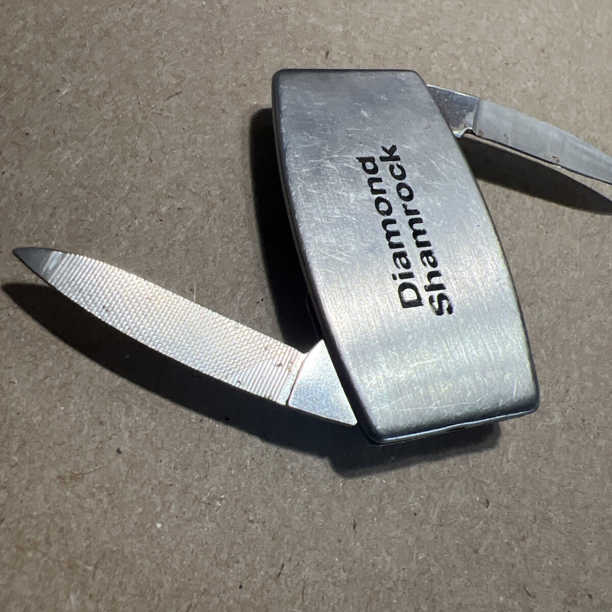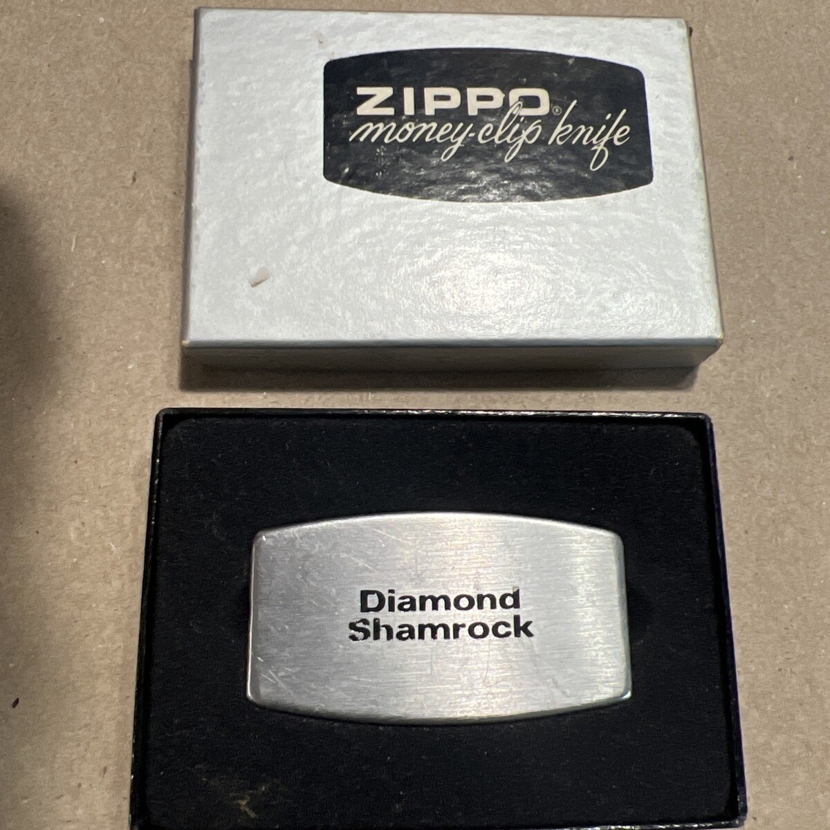 - Vintage Zippo Money Clip Knife With Box Diamond Shamrock Oil Promo Item
