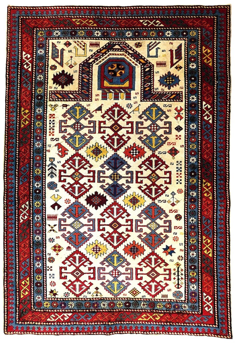 - Vintage handmade Caucasian prayed rug. 3'6"x 5'