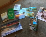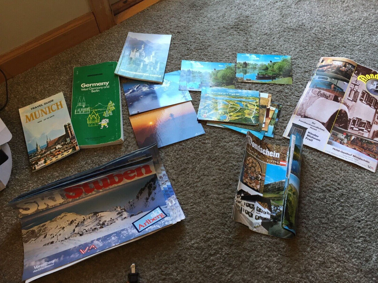 Il s'agit du lot ultime de guides de voyage allemands, de cartes postales et autres brochures de voyage. Celui-ci a ete envoye par courrier a une dame en 1986 et est reste dans le sac d'origine avec la lettre. Certains guides ou brochures sont en allemand et en anglais. Certains sont entierement en allemand. Quelques souvenirs personnels ici egalement. La plupart des cartes postales ecrites. Quelques doublons