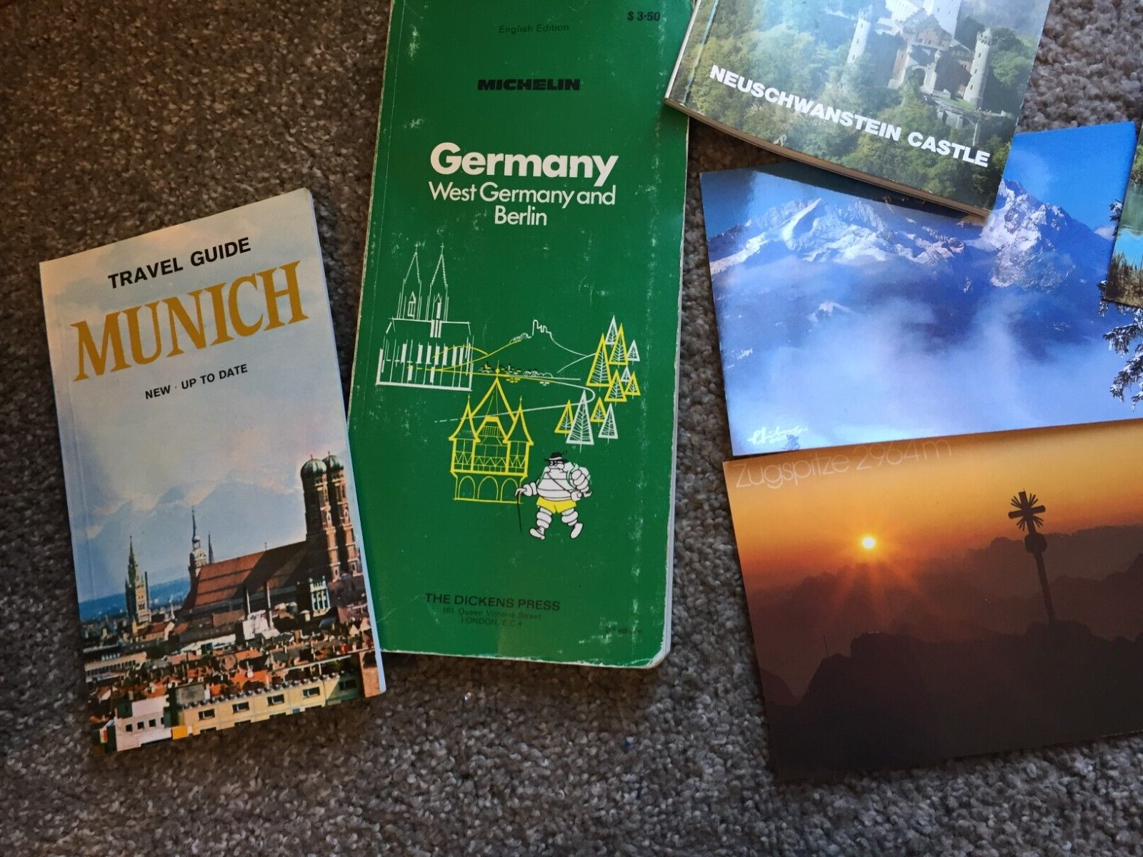 ENORME LOT vintage des annees 1980 Cartes postales allemandes de Munich Ski Stuben Mondschein Michelin Il s'agit du lot ultime de guides de voyage allemands, de cartes postales et autres brochures de voyage. Celui-ci a ete envoye par courrier a une dame en 1986 et est reste dans le sac d'origine avec la lettre. Certains guides ou brochures sont en allemand et en anglais. Certains sont entierement en allemand. Quelques souvenirs personnels ici egalement. La plupart des cartes postales ecrites. Quelques doublons C'est un grand lot que nous avons obtenu grace a une vente de type immobilier. le tout dans un etat quasi parfait. EXPEDITION GRATUITE