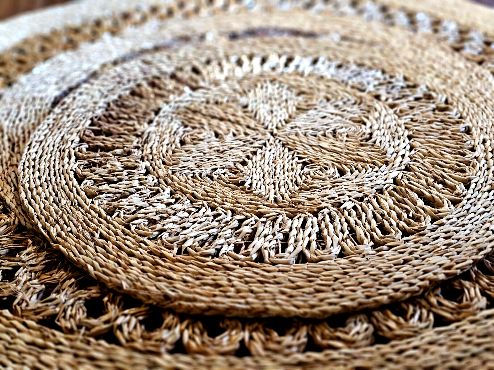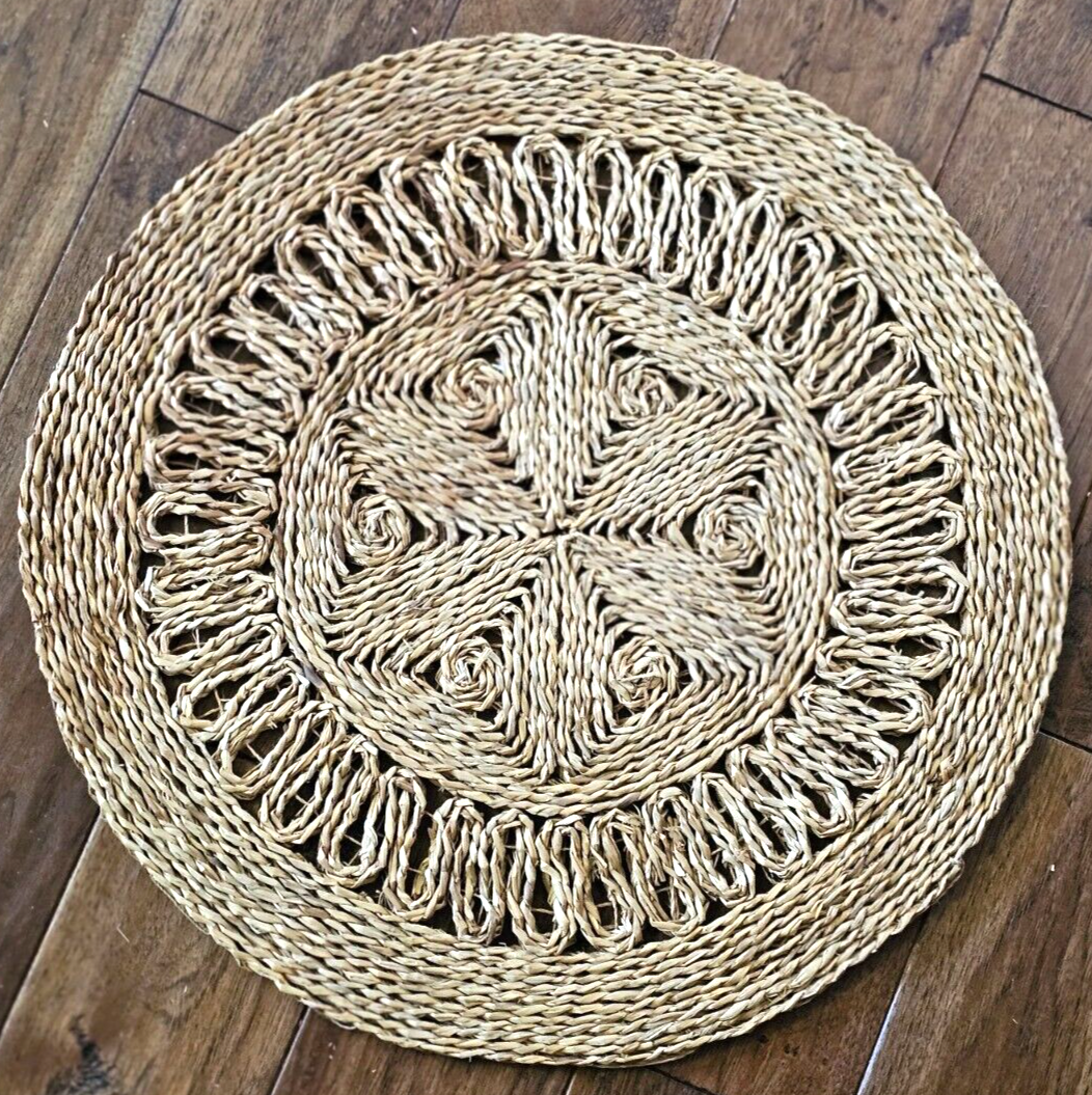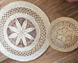 Vintage set of 2 Woven Rattan Raffia Rug Rounds 36" & 19" Round Rugs 70's Style
