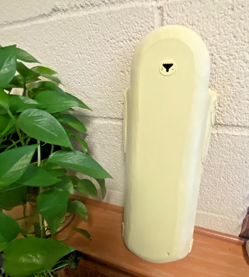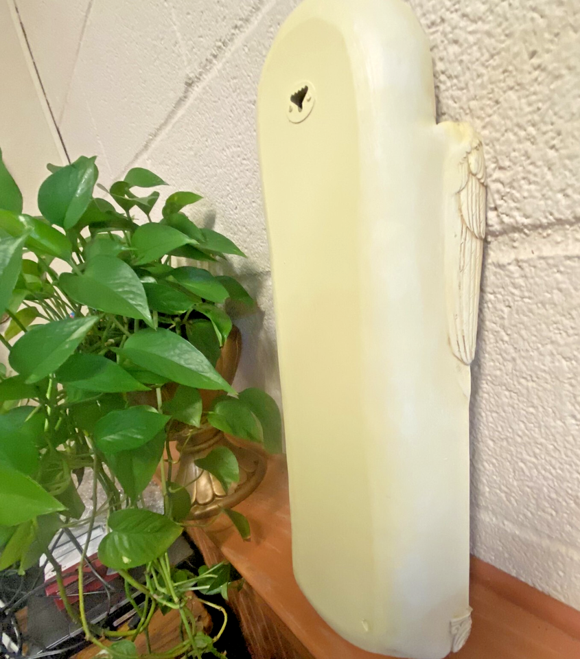 It measures 17.50" h x 8" w x base is 2.5". Made of resin. Please see pictures for details.