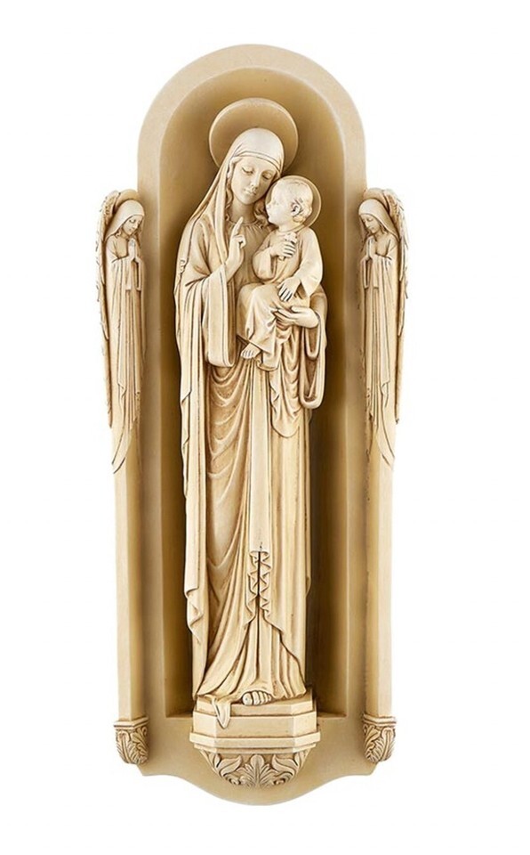 Your purchase is for a beautiful large 17.50" plaque of Our Blessed Mother Mary with Child Jesus. It is titled " San Benedetto Madonna", reason is that it is associated to the artwork in San Benedetto Church in Lucca, Italy. This plaque is perfect for any garden or can be placed indoors too. Comes with a keyhole hanger.