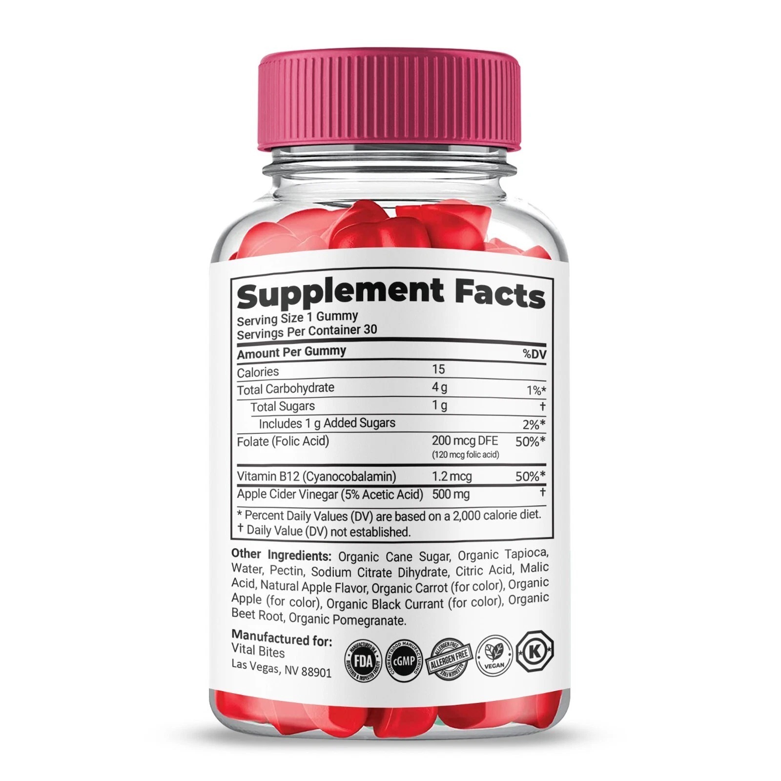 ? VitalBites Keto + ACV Gummies bring together the goodness of Apple Cider Vinegar, Vitamin B12, pomegranate, and beet root powder in one convenient and tasty gummy. Each serving is carefully formulated to deliver premium quality nutrition, supporting an active and balanced lifestyle without compromise.