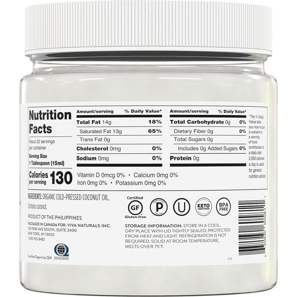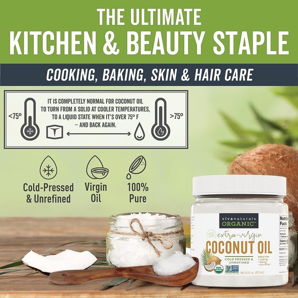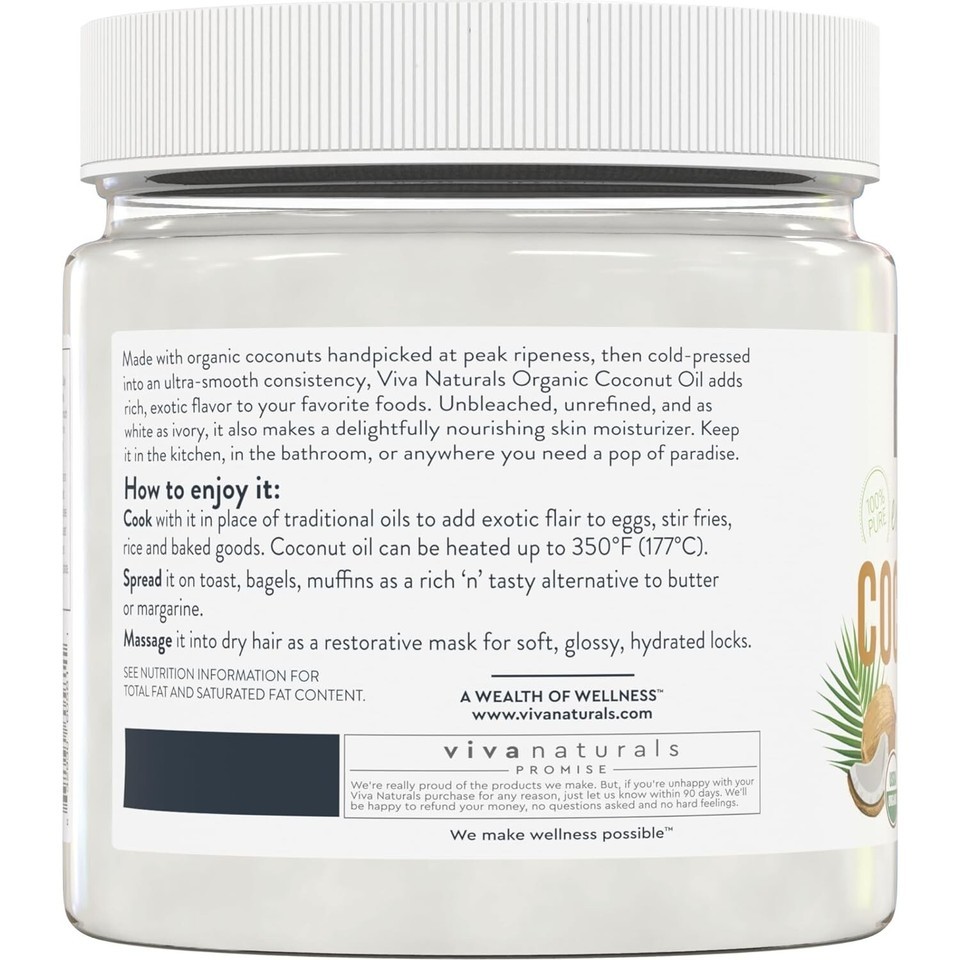 Viva Naturals Organic Coconut Oil, Cold-Pressed Natural Hair /Skin Cooking Oil