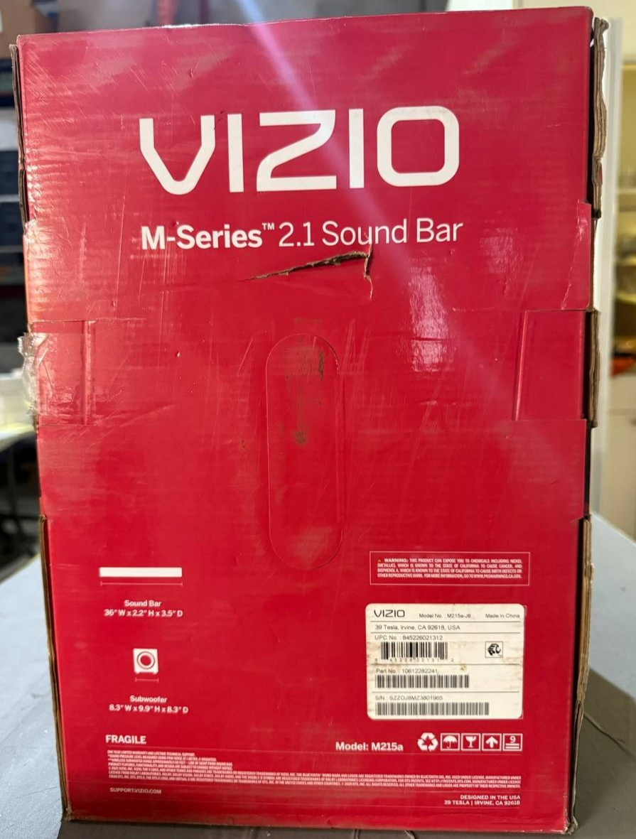Vizio 2.1 Channel Soundbar Wireless Subwoofer Dolby Atmos DTSX Bluetooth Read Brand: Vizio Model: M215AJ6 Item includes: Please note: This item includes 1x Vizio Soundbar and 1x Wireless Subwoofer Only ? As Pictured. No other accessories are included. Quality: Original Condition: This item is classified as Grade C, indicating that it is in OK condition cosmetically, with a rating of 5 to 6 out of 10. It may show several signs of wear or details that are more noticeable compared to higher-grade items. These cosmetic imperfections can include scratches, scuffs, or dents. Please note: The soundbar powers on and connects, but the subwoofer does not connect. Item comes without accessories, only power cable. Please carefully review the product images (from second on) to assess the specific condition details. Notes: Please note that the first picture of the item is for illustrative purposes only. For an accurate representation of the product's appearance, please refer to the pictures starting from the second image onwards. These subsequent pictures provide a true depiction of how the product actually looks. The box may be damaged due to bulk storage. Features: ? 2.1 channel system with wireless subwoofer ? Dolby Atmos and DTS:X support for immersive 3D audio ? DTS Virtual:X enhances surround sound experience ? Bluetooth streaming for wireless music playback ? Voice Assistant input for smart control ? HDMI eARC for high quality audio passthrough ? Low-profile design for seamless TV placement ? Night Mode for clear sound at low volumes ? Wall mountable for flexible setup ? Easy setup with included cables Thank you for choosing our Wholesale small business based in Florida. We specialize in Cell Phones and Accessories, although we also offer a variety of closeout lots to cater to diverse customer preferences. With over two decades of experience selling since 2002, we truly understand the significance of your purchase, regardless of the amount spent. Rest assured that we are fully committed to resolving any issues that may arise. Our dedicated team operates from Monday to Friday, 9 am to 5 pm, and we make it a priority to answer all inquiries promptly. We kindly request that you give us the opportunity to address any problems before opening a case or leaving feedback. Your satisfaction is of utmost importance to us, and we will do our best to find a satisfactory solution. Furthermore, we value fairness in pricing, especially for wholesale orders. If you feel that the listed price is not suitable, we encourage you to utilize the Best Offer feature. We are always willing to work with you to reach a mutually beneficial agreement. Once again, we sincerely appreciate your interest in our items. If you have any further questions or require assistance, please don't hesitate to reach out. We are here to serve you.