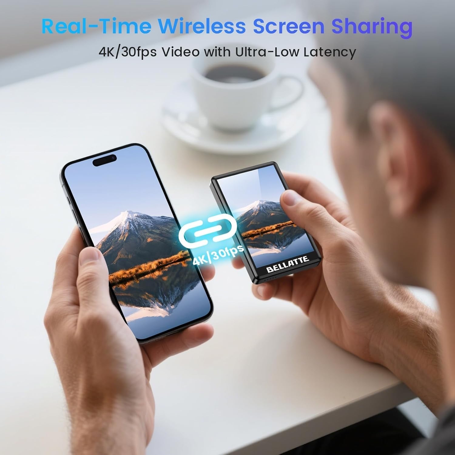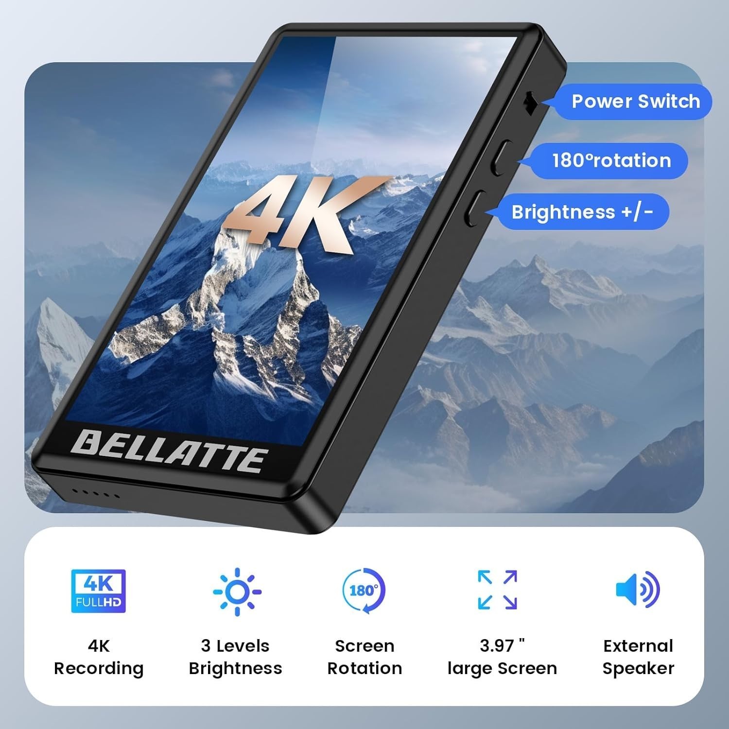 Supports 4K 30fps recording: The Bellatte phone Vlog selfie monitor screen supports playback of 4K 30fps videos with no lag or blackouts. Easily capture studio-quality selfies, Vlogs, live streams, and content for TikTok, Instagram, and YouTube. Perfect for content creators.