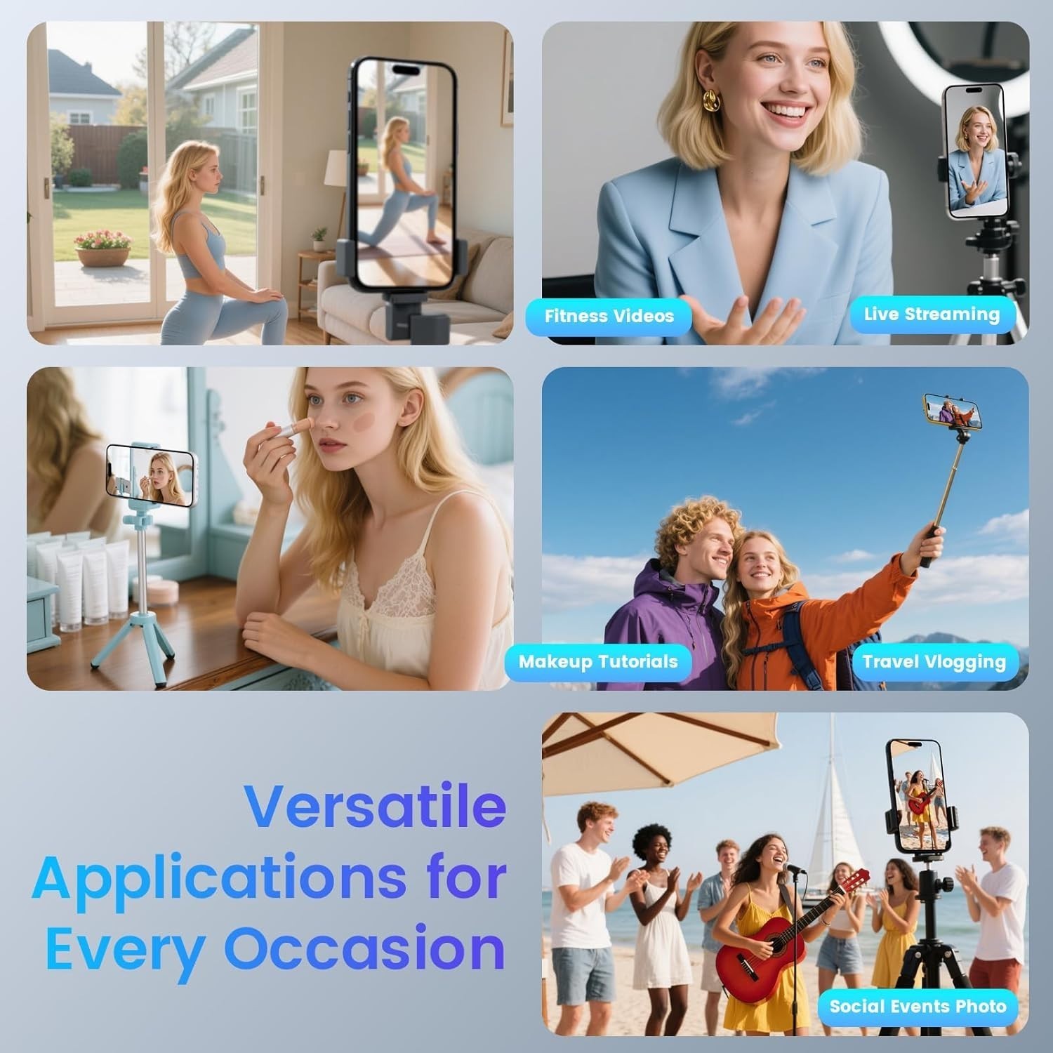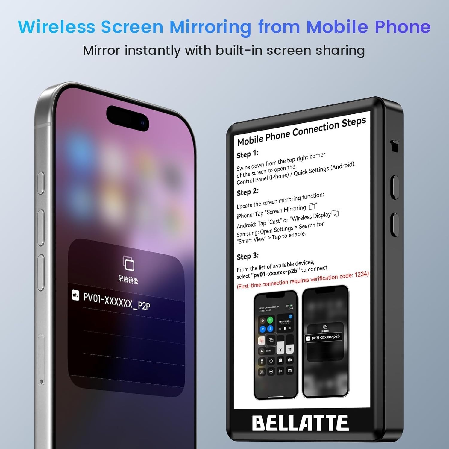 Magnetic Wide Compatibility: This Bellatte selfie monitor screen offers built-in magnets for direct attachment to iPhone 12-16 series. Includes universal magnetic sticker for older iPhones (7/8/X/11), Samsung Galaxy and more Android devices. Simply use with your phone's screen mirroring function, no app download required. *Screen mirroring requires iOS 9.0+ or Android 5.0+ on this selfie monitor screen.*