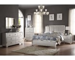 The Voeville II Collection will create a warmer and fresher environment in your master bedroom with its platinum finish. Features panel wooden headboard or upholstered PU headboard for you to choose from, complemented by mirror inlay trim, brings a unique more relaxing and modern taste. Create a fantastic look in your bedroom with the Voeville II Collection.