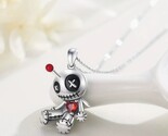 - Voodoo Doll Necklace Red Garnet Heart Silver Plated 18” Chain