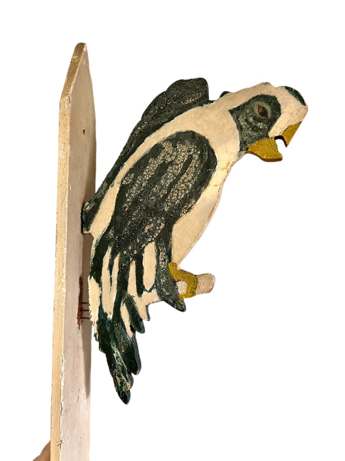 - Vtg 1920's Painted Wood Parrot Folk Art Wall Mount Plant 17" Art Deco Green